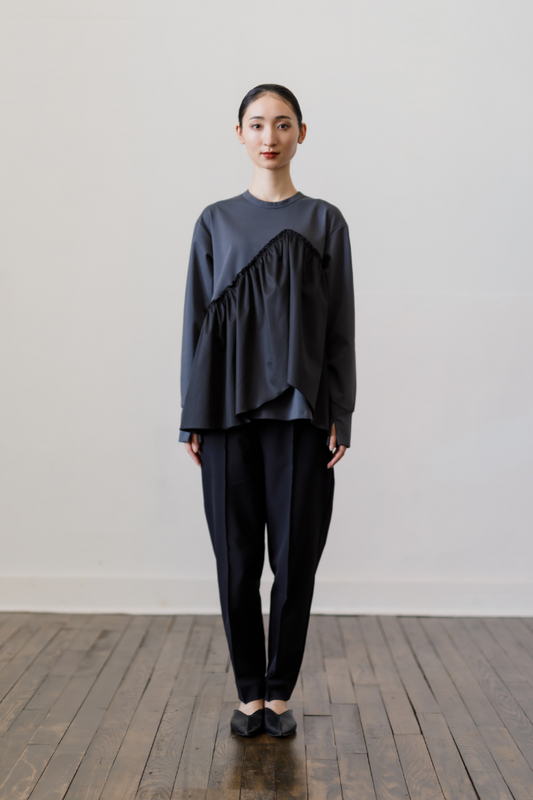 SOLD OUTSatin Frill pullover(Gray)